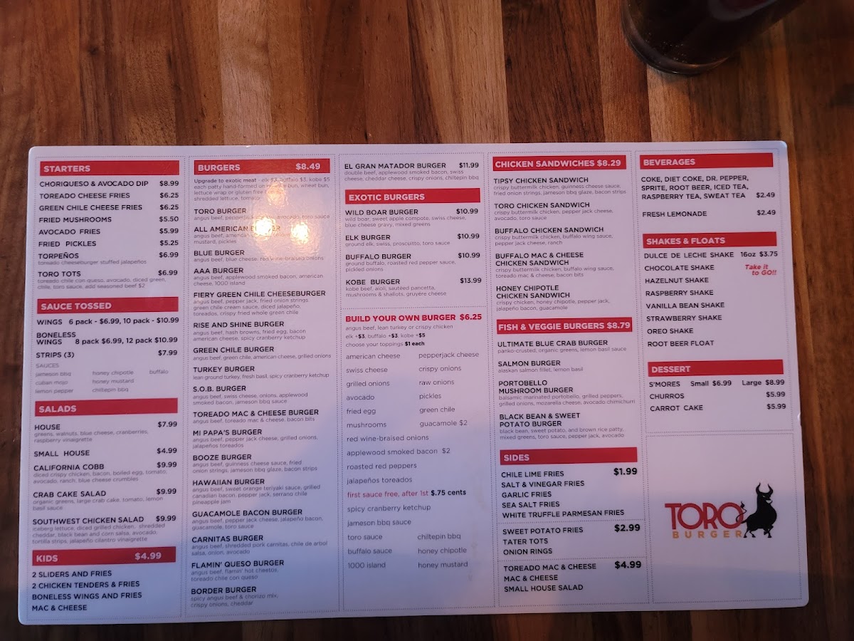 Nestled in El Paso, Texas, Toro Burger Bar offers a vibrant atmosphere where taste reigns supreme. Customers rave about the juicy, flavorful burgers that come highly recommended for their simplicity yet rich seasoning. Options range from traditional favorites to exotic meats, ensuring there's something to satisfy every palate.